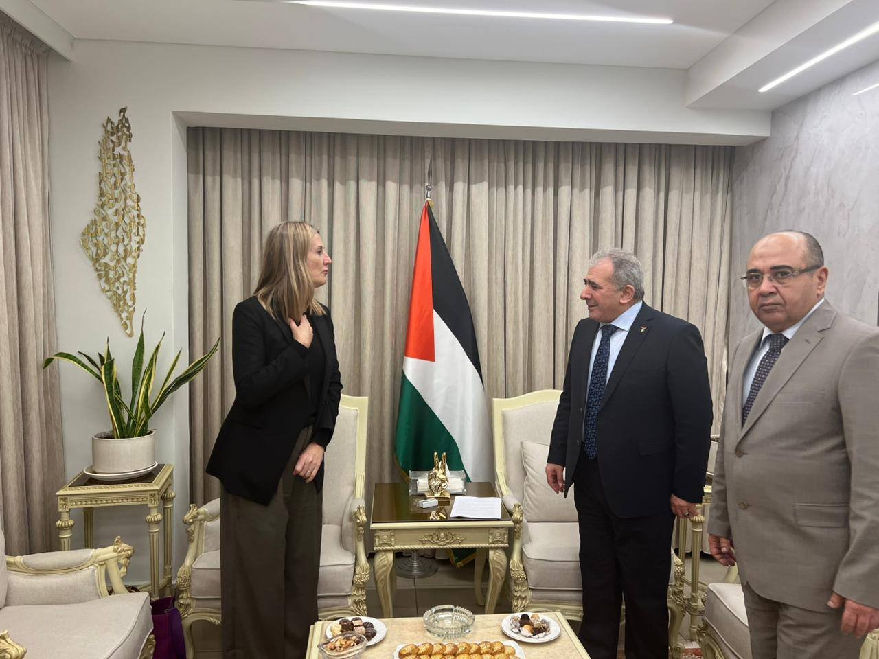 واطلع السفير الاسعد السفيرة النرويجية على اخر المستجدات في الاراضي الفلسطينية المحتلة وجهود الرئيس محمود عباس لوقف العدوان الاسرائيلي على ابناء شعبنا وعلى مقدساته الاسلامية والمسيحية وخاصة في مدينة القدس واهمية المضي في مسار سياسي يفضي بانجاز حل الدولتين وفق قرارات الشرعية الدولية.